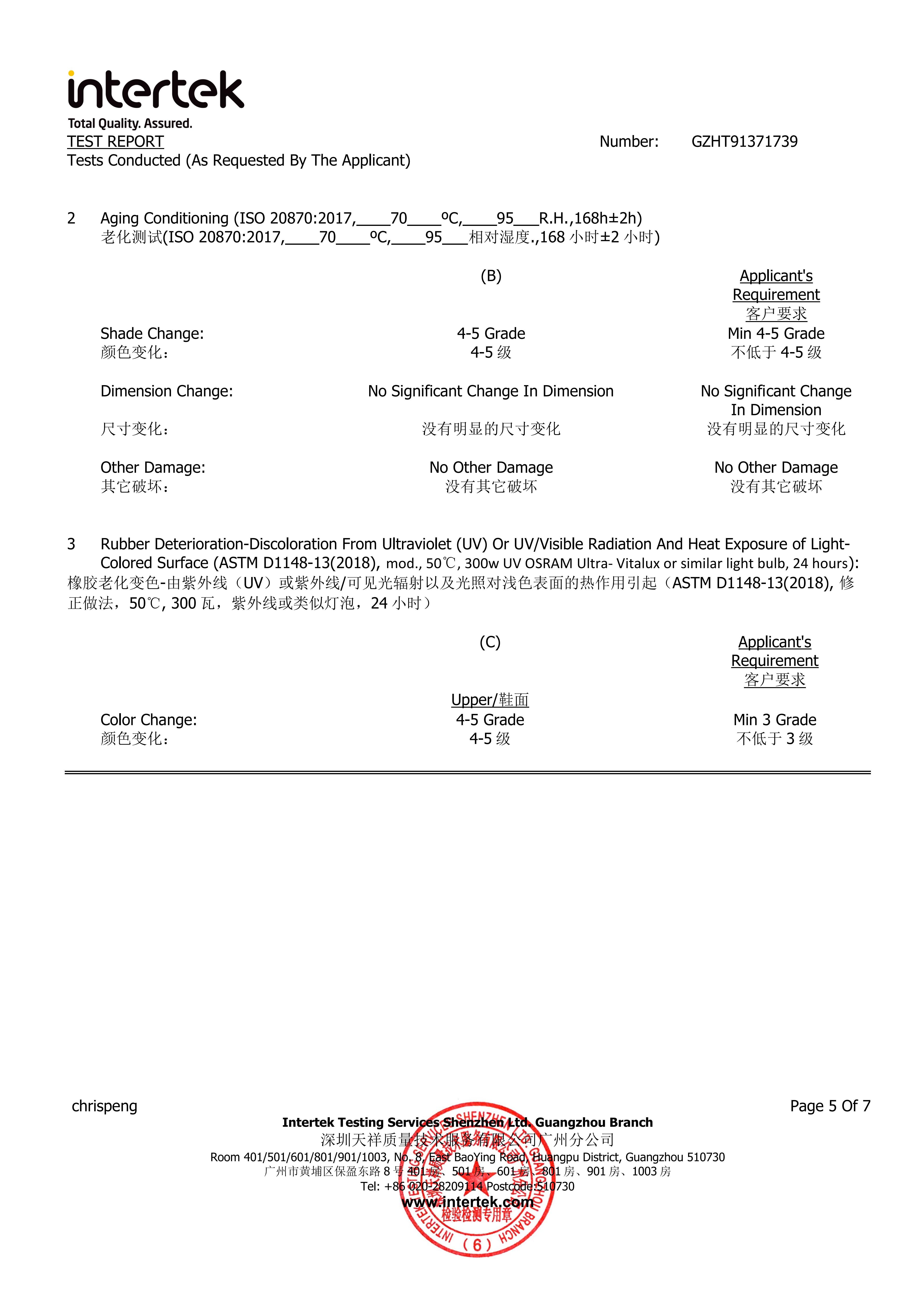 Aging & Color Change Pass Test